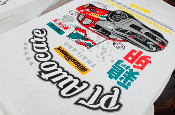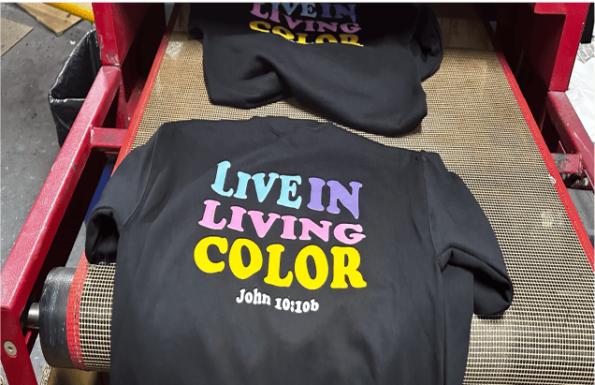 DTG stands for Direct to Garment printing which is a digital printing technology that prints a design directly onto a garment using a specialized inkjet printer. The printer uses water-based ink to print the design and then the print is cured by a heat press or special conveyer dryer tunnel. The conveyer dryer is the best technology to cure the ink as it doesn’t leave heatpress mark on the garment.