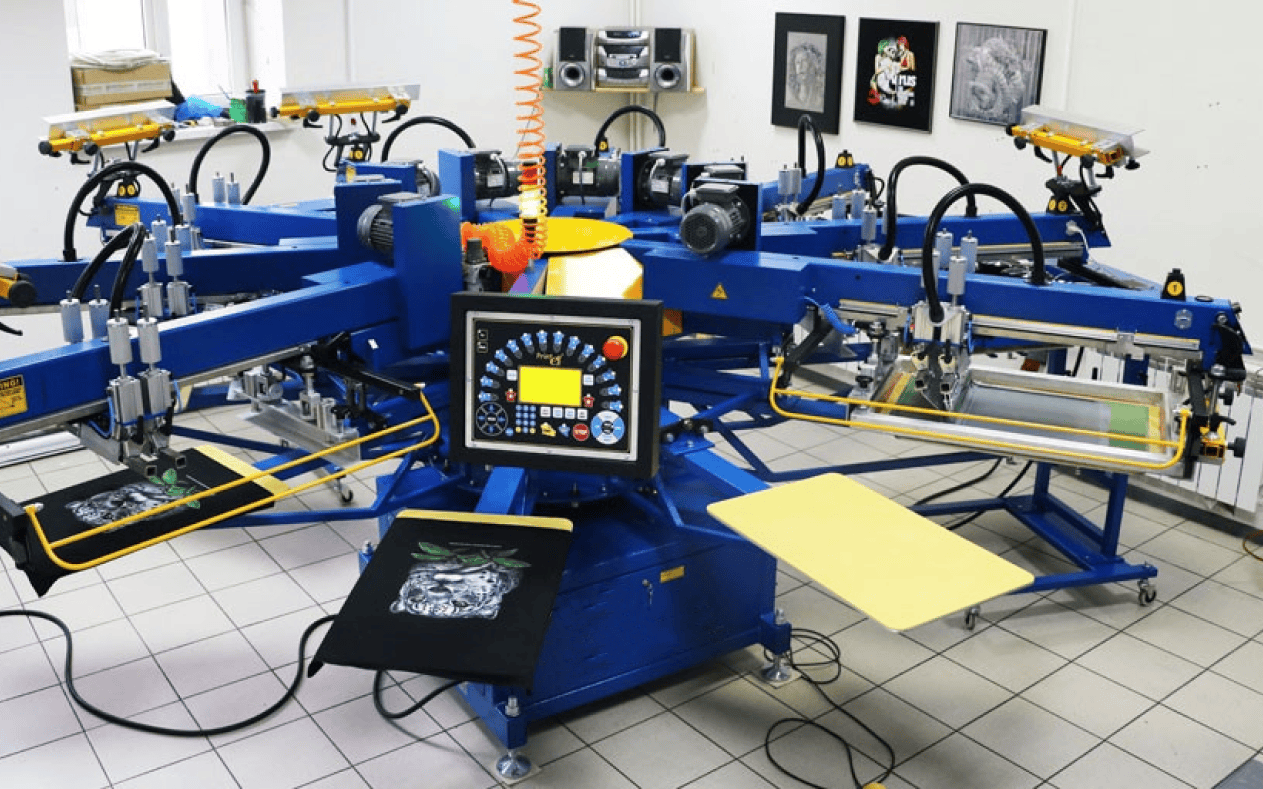 The Screen printing process involves creating a stencil (known as a “screen”), and then ink is pushed through the stencil onto the material using a squeegee.